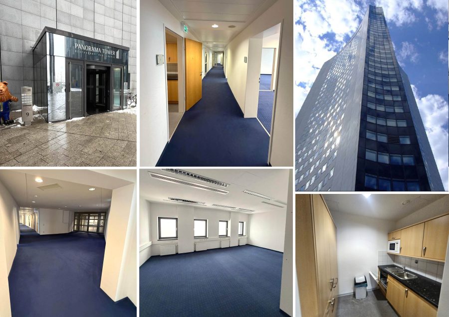 Die zur Vermietung angebotene Einheit ist eine großzügige Bürofläche, die sich auf der 17. Etage eines insgesamt 29 Etagen umfassenden Gebäudes, dem "Uni-Riesen", befindet.