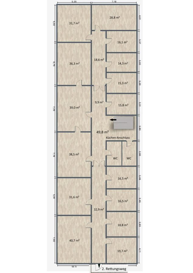 - sep. 2. Außenzugang (Rettungsweg) vorhanden