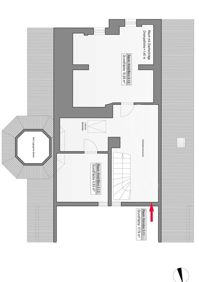 - davon 1 ca. 38,6 m² großer Raum mit Kaminanschluss
