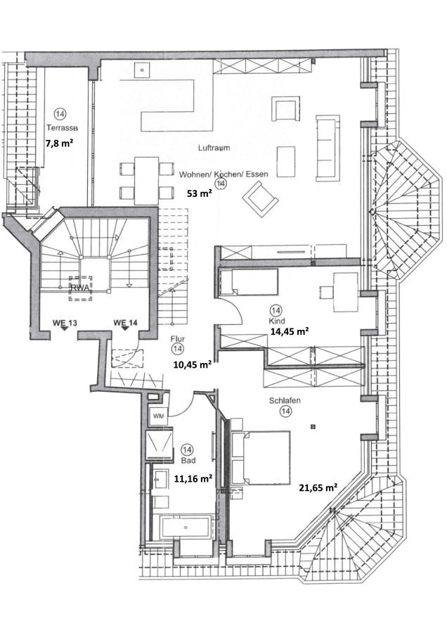 Maisonette Eigentumswohnung mit 5 Räumen inkl. ca. 46,74 m² großen Abstellraum in der oberen Ebene.