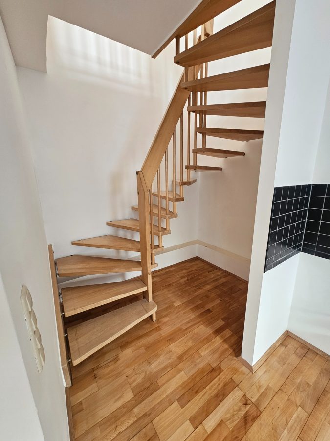 Die Räume sind großzügig geschnitten und bieten viele Gestaltungsmöglichkeiten. Dank der Maisonette-Aufteilung erstrecken sich die Wohnräume über zwei Ebenen, was für eine interessante Raumaufteilung und eine besondere Wohnatmosphäre sorgt.
