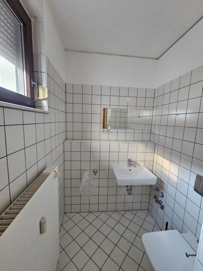 - Badezimmer mit Badewanne + Glasduschabtrennung und Fenster